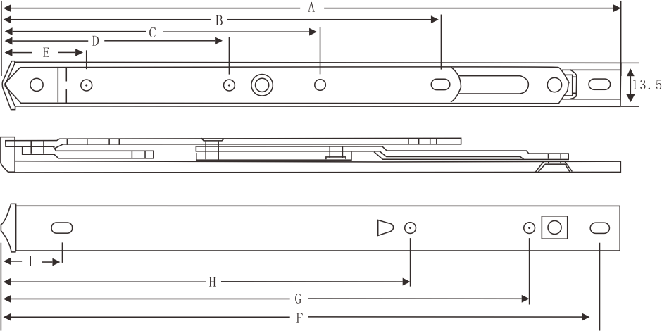 | 連桿數(shù)量 | 折片厚度(mm) | 規(guī)格\值 | A | B | C | D | E | F | G | H | I | 窗最高(mm) | 窗最寬(mm) | 窗最重(kg) | 開啟角度(±2°) |